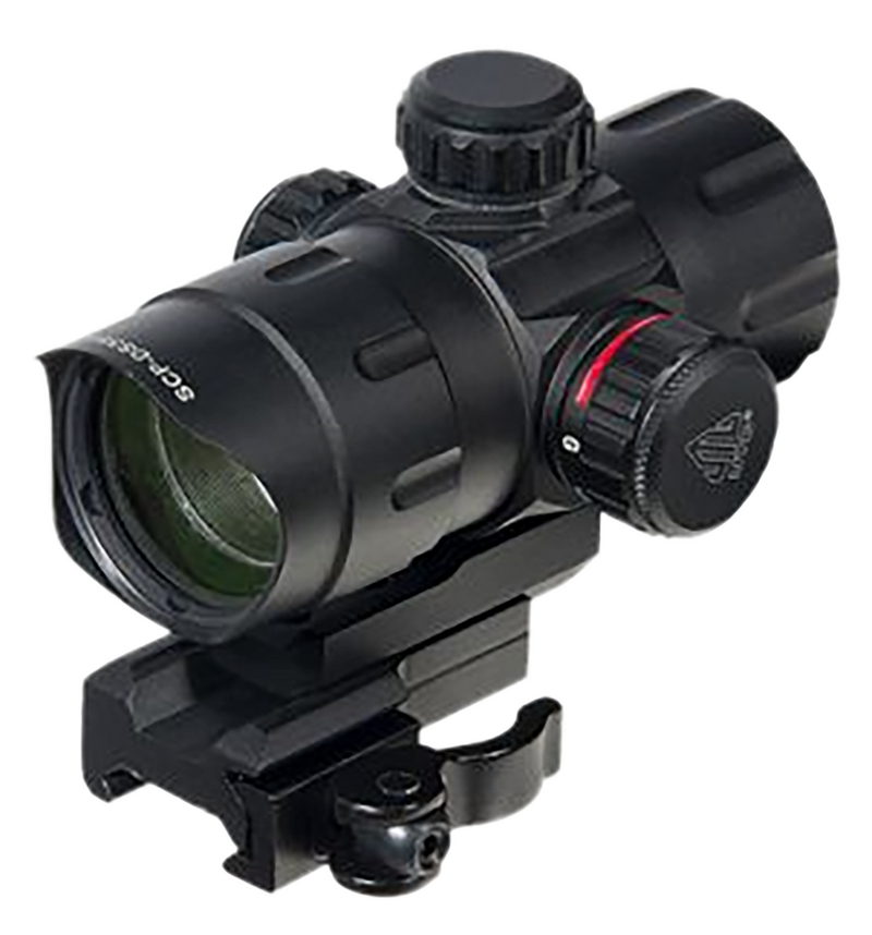 This 1x fixed magnification red dot sight features a 38mm objective lens with a 4 MOA red/green illuminated dot reticle optimized for close-quarters shooting. The sight includes a quick disconnect mount, unlimited eye relief, and Emerald multi-coated optics for enhanced light transmission across varied lighting conditions.