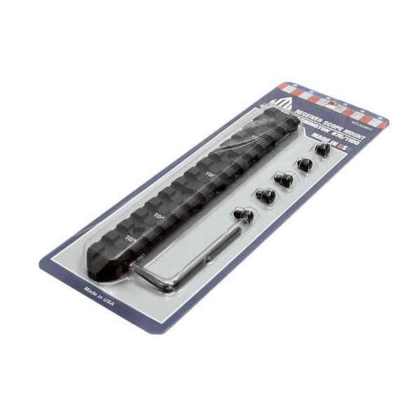 This is a 1-piece Picatinny rail mount designed specifically for Remington 870/1100 shotguns with drilled and tapped receivers. The 6.1-inch extended aluminum rail features 14 Picatinny slots for flexible optic positioning and maintains a low-profile see-through design to preserve the use of front bead sights. Precision machined from aircraft-grade aluminum with matte hard coat anodize finish, it is made in the USA and backed by a manufacturer's limited lifetime warranty.