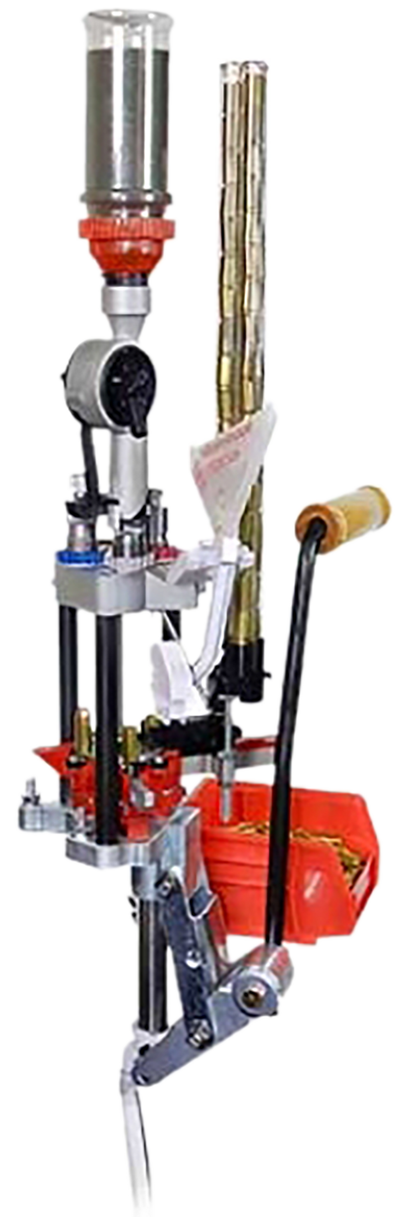 The Lee Pro 4000 is a progressive reloading press designed for .44 Special and .44 Magnum cartridges. This kit includes a 3-die set, shell plate, universal case feeder, auto-drum powder measure, and priming system with everything needed to begin reloading. The press features modular construction and requires no adjustments for operation.