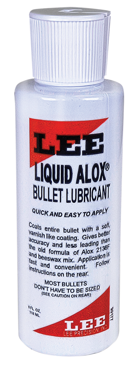 Lee Liquid Alox is a liquid bullet lubricant designed to eliminate leading and improve accuracy by coating cast bullets with a thin, durable varnish-like finish. The dried coating does not degrade gunpowder and works with all cast or swaged bullets, including micro band bullets designed for tumble lubing. This 4 oz bottle is multi-caliber compatible and contains lead.