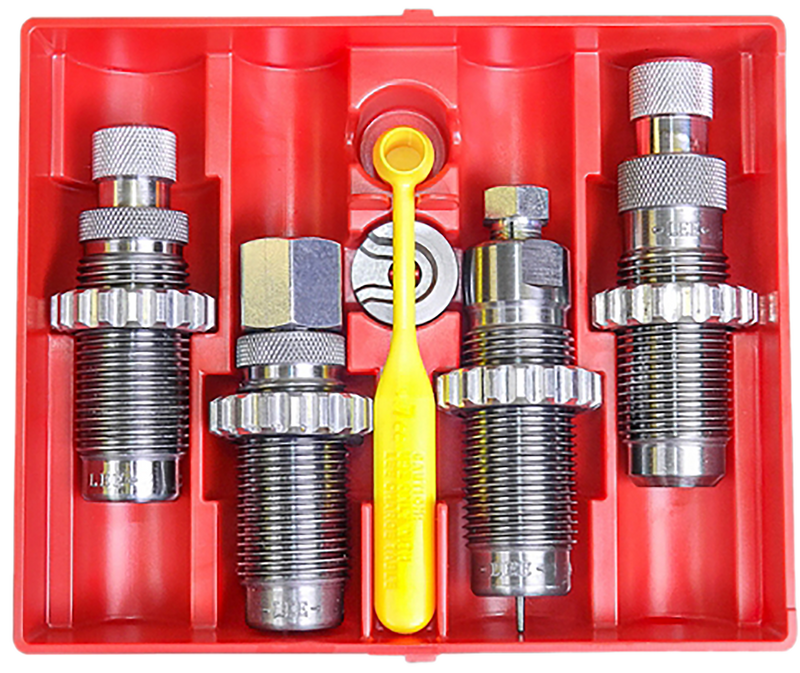 This Lee Precision 4-die set for .30 Super Carry includes carbide full length sizing die, powder through expanding die, bullet seating die, and carbide factory crimp die. The set comes with a universal shell holder and instructions, designed for reloading pistol ammunition. Please note that load data for this cartridge may be limited from powder manufacturers.