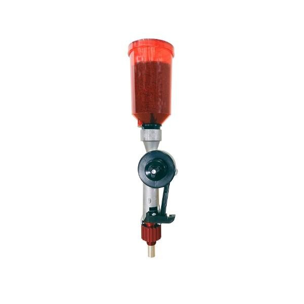 This update kit upgrades Lee's Auto-Drum Powder Measure with a red anodized swivel adapter that provides improved grip control and larger surface area for press adjustment. The swivel adapter raises the powder measure to accommodate long-stemmed dies and eliminates the need for a separate riser. Includes the swivel adapter, powder hopper valve, and mounting screw.