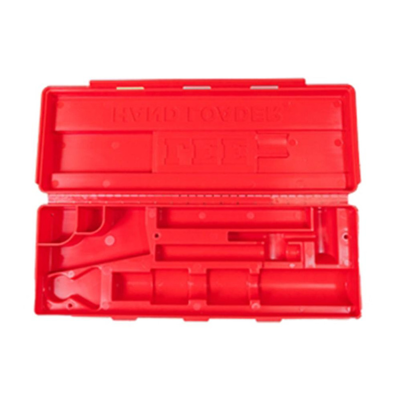 This is a molded storage box designed specifically for Lee Hand Press reloading equipment and accessories. The compact case measures 11.7" x 4.3" x 2.5" and fits in a back jean pocket for convenient transport to the range. It accommodates the hand press, breech lock hand press lock ring wrench, 3-die reloading set, breech lock ram, prime cutter, lock stud, and case length gauge.
