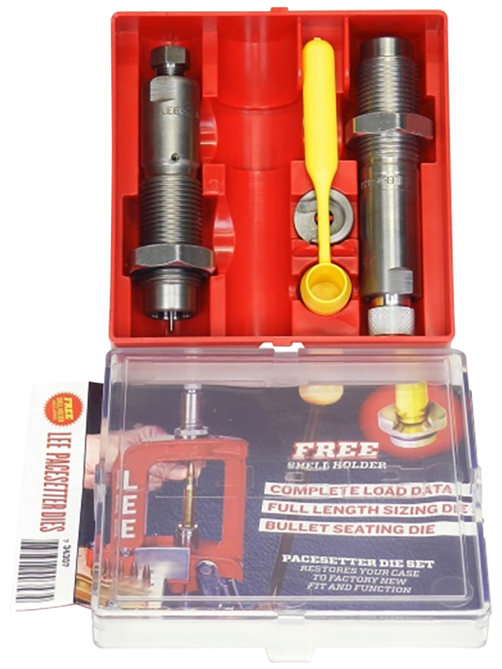 This Lee Precision Pacesetter 2-Die Set is designed for reloading 32 Winchester Special rifle cartridges and includes a full-length sizing die, bullet seating die, universal shell holder, powder dipper, and load data instructions. The set features steel construction and comes ready to use for precision ammunition reloading.