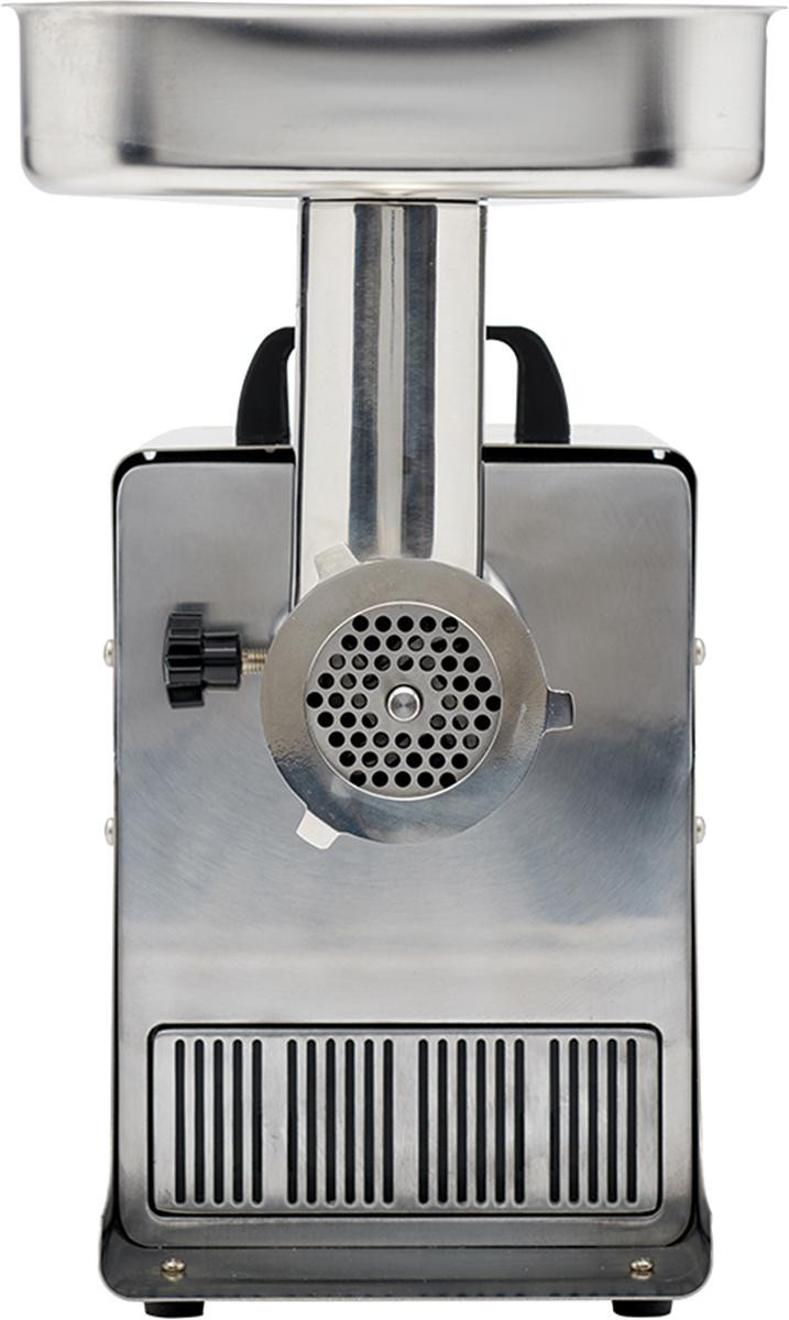 This 0.5 HP stainless steel electric meat grinder is designed for processing game like deer, grinding approximately 7 lbs. per minute. Features a large 12-1/4" x 9-1/8" x 2-1/4" deep stainless steel meat pan and represents an upgrade from the #5 Big Bite model.