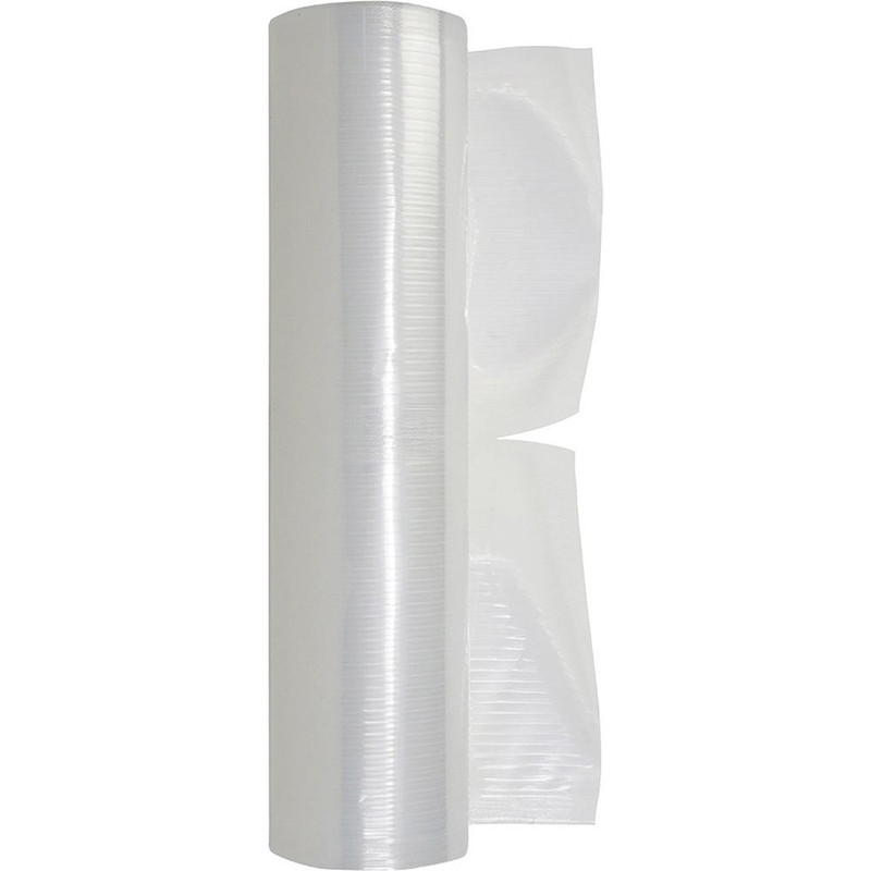 Two 11" x 16' vacuum sealer bags with 4-3/4" portion sizes that can be cut to desired length. Features exclusive parallel channel design to prevent air pockets and sturdy 3.5 mil thick 4-layer puncture-resistant plastic. Compatible with most vacuum sealers except chamber vacuum sealers, includes space for date and contents labeling.