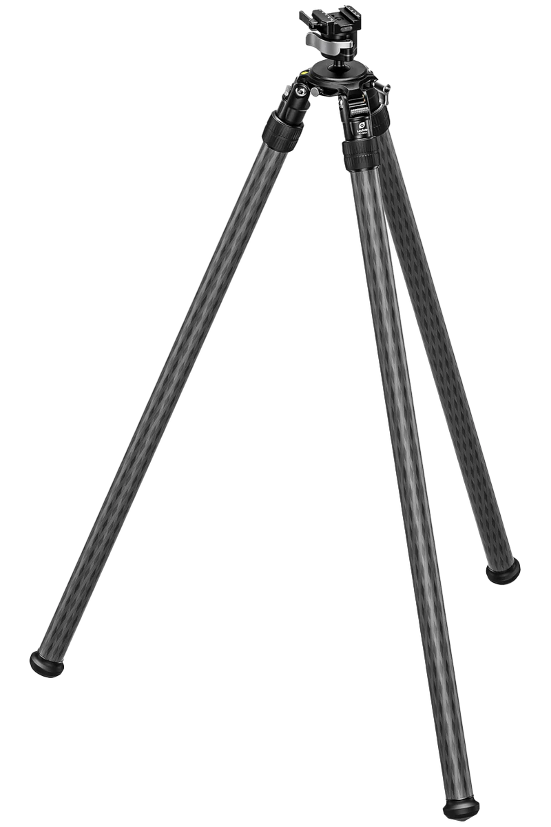 This is a three-legged carbon fiber tripod system designed as a gun rest for firearms and precision shooting applications. It features rubber feet for stability and weighs 4.78 lbs with a collapsed length of 43.5 inches. The tripod assembly includes the SO-362CX head and MAB-75X legs for a complete shooting support solution.