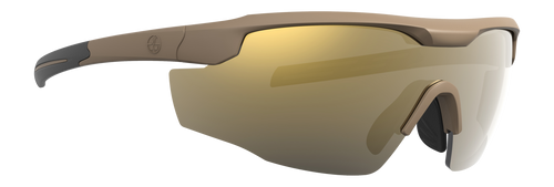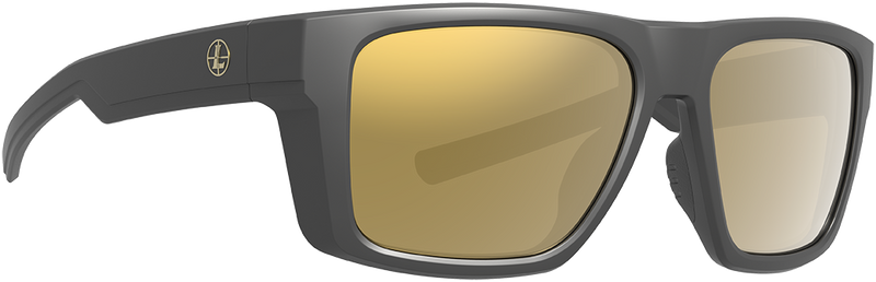 The Leupold Skyline is a matte black framed eyewear with bronze mirror lenses designed for outdoor shooting and sport activities. The mirror lens coating provides glare reduction and UV protection for extended time in bright conditions. Dimensions are approximately 7.1" x 4.7" x 3.1".