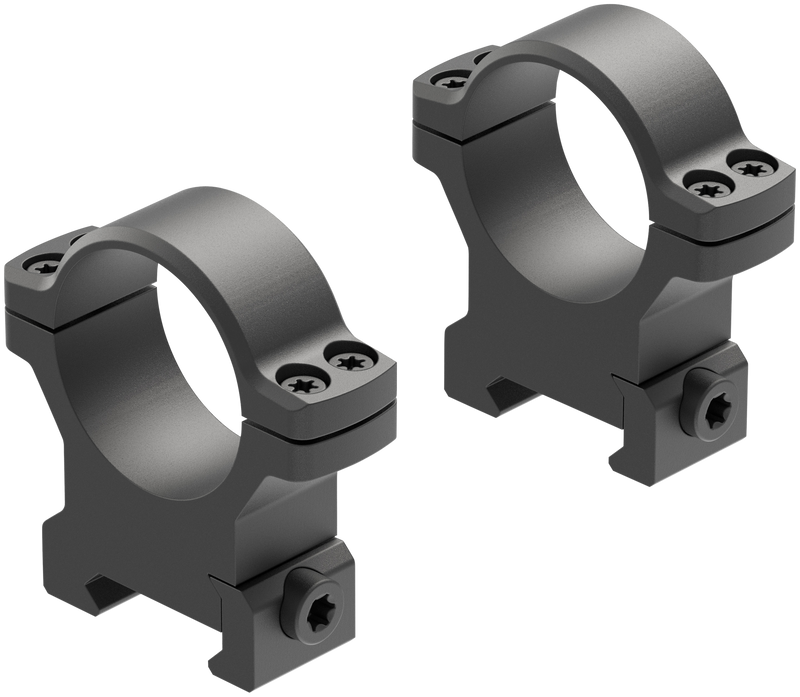 Two-piece Weaver-style scope rings machined from 7075-T6 aircraft-grade aluminum for mounting 30mm tube diameter scopes. High ring height provides maximum mounting flexibility and a rock-solid mounting solution with increased contact area for enhanced stability. Made in the USA with a manufacturer's lifetime warranty.