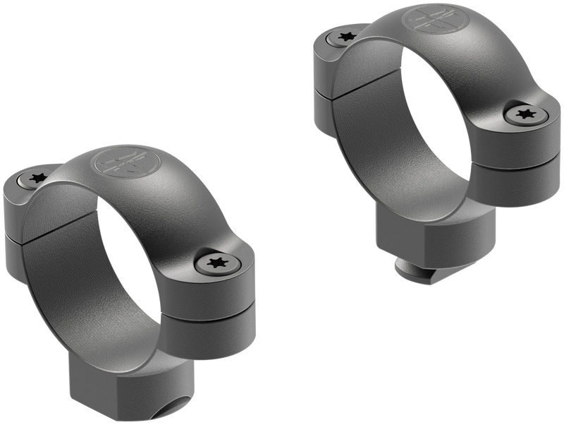 Leupold Standard 30mm High scope rings are precision-engineered 2-piece steel rings designed for use with Leupold STD mounting bases. The rear ring features windage adjustment screws for precise alignment, and the matte black finish resists glare. Available in high height configuration with forged and machined steel construction.