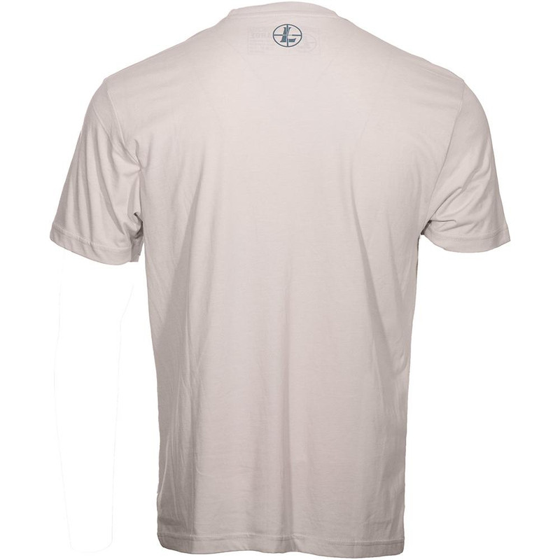 Leupold branded short sleeve hunting shirt in sand tan color, sized large. Features elk hunting themed graphics promoting Leupold riflescopes. Made for hunters who want to display brand loyalty in the field.