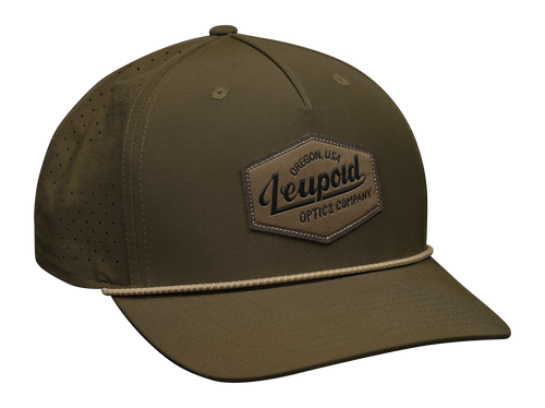 Mid-profile trucker hat with snap-back adjustment and pre-curved bill, one size fits most. Features Leupold's modified rectangle logo design. Adjustable for comfortable all-day wear.
