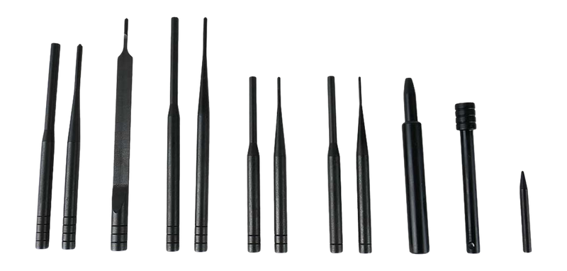 This 12-piece armorer punch set is designed for AR-15 disassembly, maintenance, and gunsmithing work. The set includes various punch sizes needed for removing pins and performing common AR-15 maintenance tasks. Manufactured by Luth-AR, a recognized gunsmithing tool supplier.