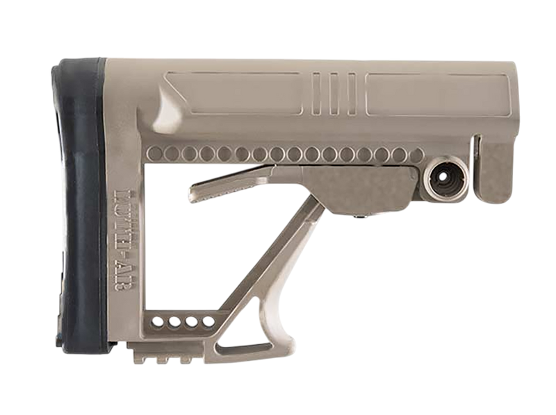 The Luth-AR MBA-5F is a modular stock assembly designed for AR-15 platform rifles. This polymer stock features a compact 12.2" length and includes all necessary components for direct installation on mil-spec buffer tubes. The flat dark earth finish provides a durable, low-glare appearance suitable for tactical and hunting applications.