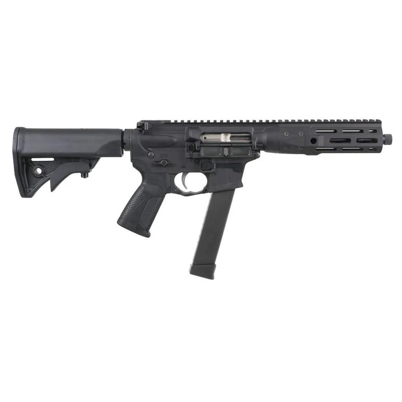 Semi-auto short barrel rifle chambered in 9mm Luger with an 8.5" threaded barrel and 27+1 round capacity. Features a MonoForge upper receiver with integrated rail base, 6" M-LOK handguard, enhanced fire control group with nickel Teflon coating, and fully ambidextrous controls. Includes LWRC compact adjustable collapsible stock and weighs 4.8 lbs.