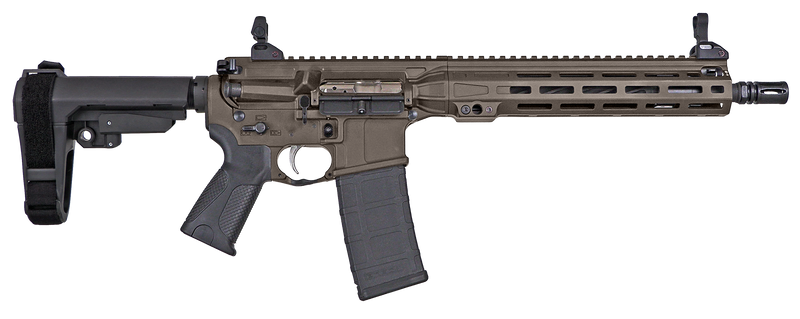 LWRC Individual Carbine MKII in 5.56 NATO/.223 Rem with a 12.7" barrel and semi-auto piston-driven action. Features flip-up front and rear sights, SBA3 brace, black polymer furniture, and a compact 43" overall length suitable for CQB and tactical applications.