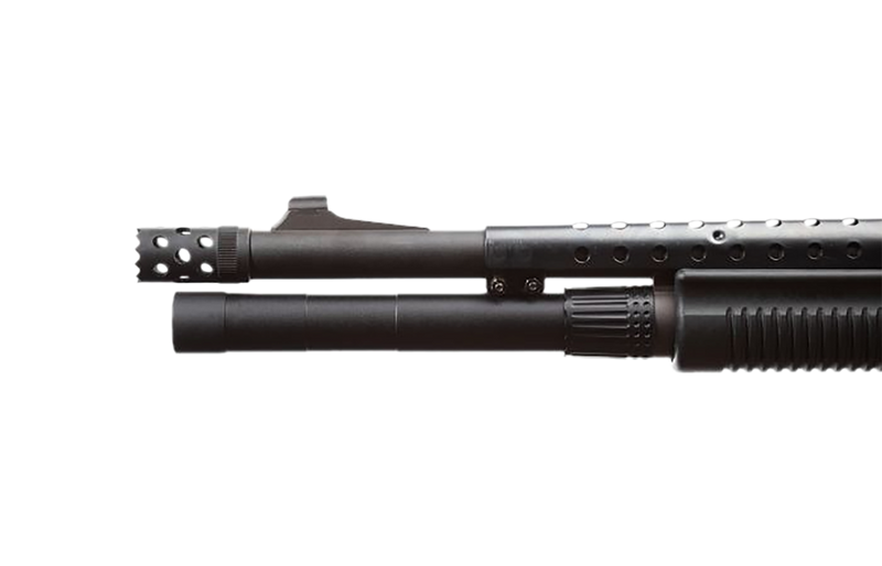 This is a +3 round magazine extension for the Remington 870 pump-action shotgun, machined from 6061 aluminum with a matte black anodized finish. The modular design allows for reversal to change clamp recess location for maximum versatility. Extension adds 3 rounds of capacity to the standard magazine tube.