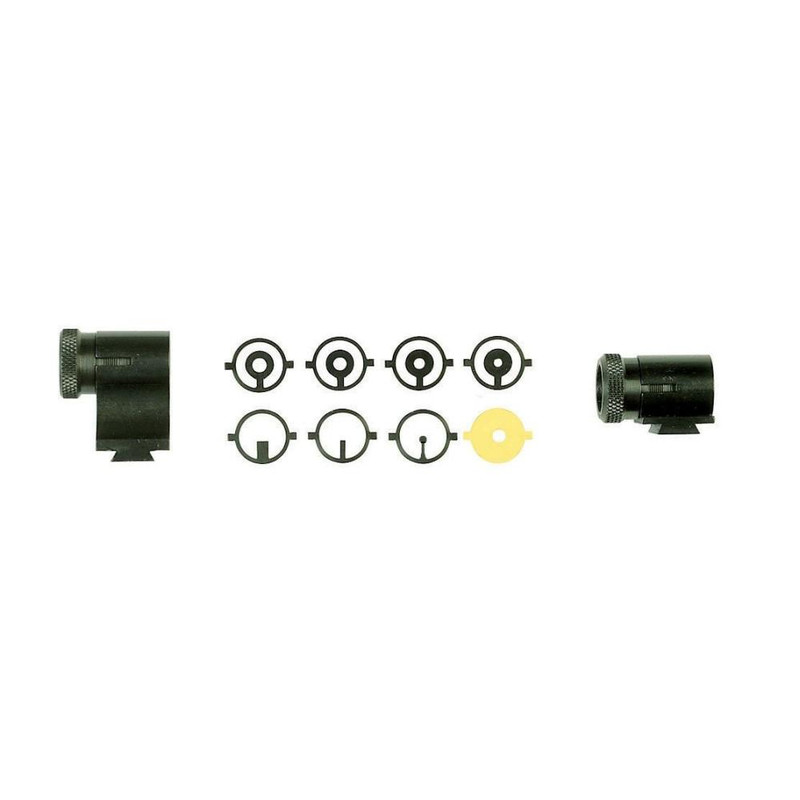 Machined steel front sight designed for 3/8" dovetail slots on rifles and muzzleloaders, standing 0.584" high. Includes eight interchangeable inserts that lock in place with a threaded cap for customizable targeting options. Compatible as a companion sight to Lyman receiver sights.