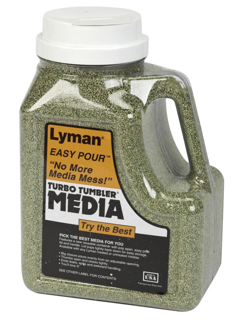 Lyman Turbo Case Cleaning Media is a specially treated ground corncob media designed to clean, polish, and prepare cartridge cases for reloading. The 4.5 lb container works with Lyman Turbo Tumblers and most competitor tumbler models to restore dirty and tarnished cases in a matter of hours. Compatible with all calibers and case types.
