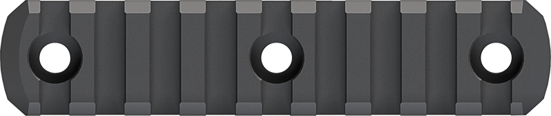 This M-LOK aluminum rail section features 9 slots and is designed to attach 1913 Picatinny spec rail-mounted accessories such as lights and vertical grips to M-LOK compatible handguards and forends. Machined from mil-spec anodized aluminum with beveled ends to reduce snagging, it includes all necessary hardware for direct attachment to M-LOK slots on aluminum or polymer handguards.