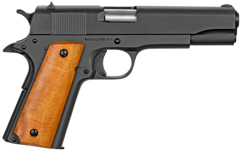 Semi-automatic 1911-style pistol chambered in 9mm with a 5" barrel and steel frame. Features a parkerized finish, fixed sights, wood grips, and single-stack 10-round magazine capacity. This full-size GI-spec 1911 includes a lowered and flared ejection port and beveled magazine well.