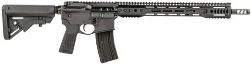 Semi-auto rifle chambered in .350 Legend with a 16" M4 contour barrel and 1:12 twist rate. Features an optics-ready upper receiver, 15" FSR handguard, custom tuned trigger, B5 Bravo stock and grip, and Aura XTD muzzle device. Hard coat type III anodized finish, aluminum construction, 8.25 lbs, overall length 32"-35.5".