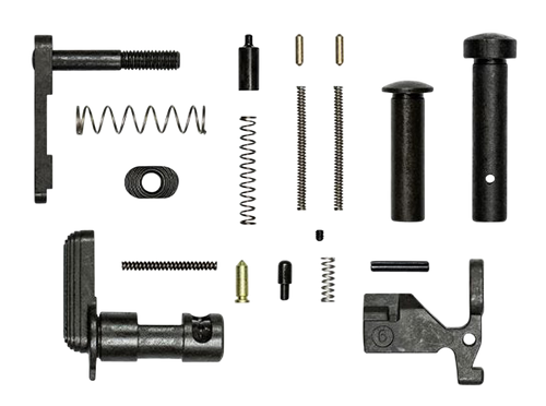 Lower parts kit for AR-15 platforms, excluding fire control group components. Contains MOE-compatible parts manufactured from steel and polymer materials. Ships in black finish with standard mil-spec compatibility for drop-in installation.