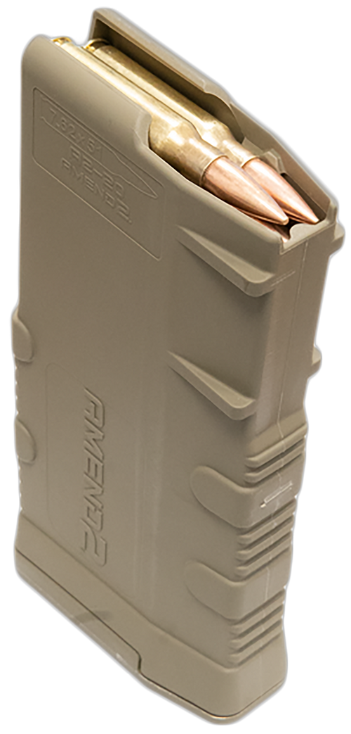 Amend2 Mod 3 magazine chambered in 7.62 NATO/.308 Winchester with 20-round capacity, designed to fit FN SCAR 17/17S and SCAR 20/20S rifles. Constructed from durable polymer in Flat Dark Earth finish for reliable field performance.