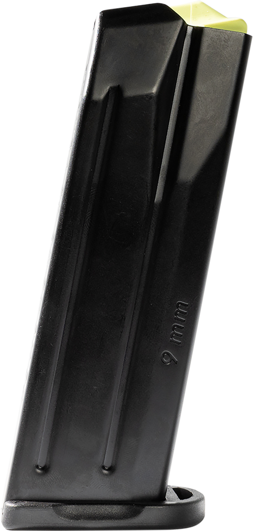 This Rost Martin RM1C magazine is chambered in 9mm and holds 10 rounds. It features an extended baseplate for improved grip and handling.