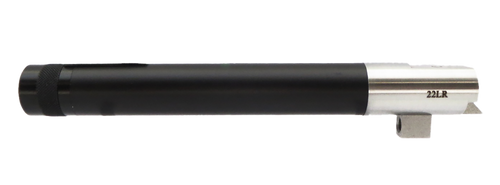 This is a replacement barrel for Ruger 10/22 rifles chambered in .22 Long Rifle with an 18" length and threaded muzzle. The barrel features black aluminum construction with rifled bore and is designed as a drop-in replacement accessory for the 10/22 platform.