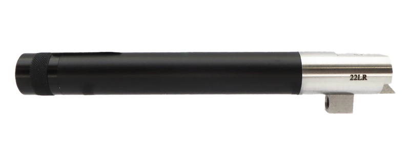 Replacement barrel for Browning Buck Mark .22 LR pistols, featuring a 7-inch length with threaded muzzle for suppressor attachment. Constructed from aluminum with tensioned design and black finish, weighing 8.8 ounces. Direct bolt-on installation compatible with standard Buck Mark platforms.