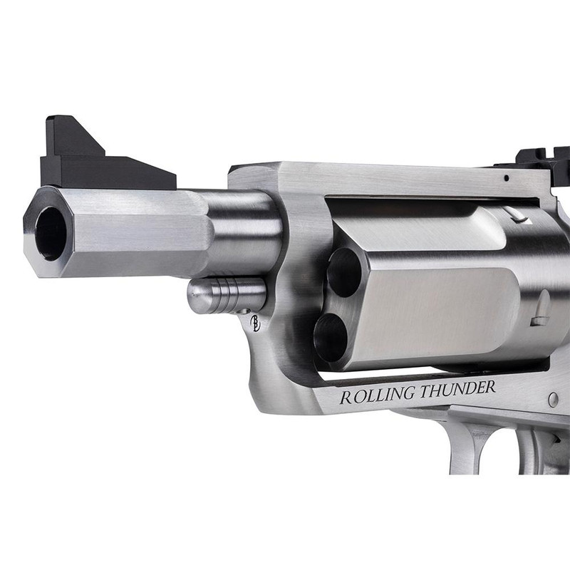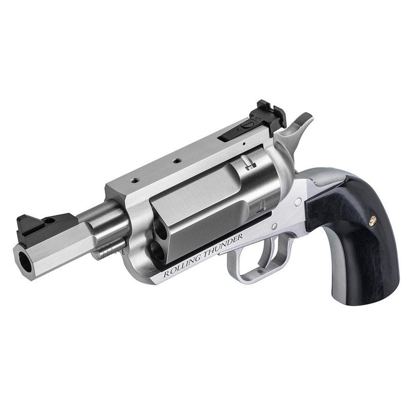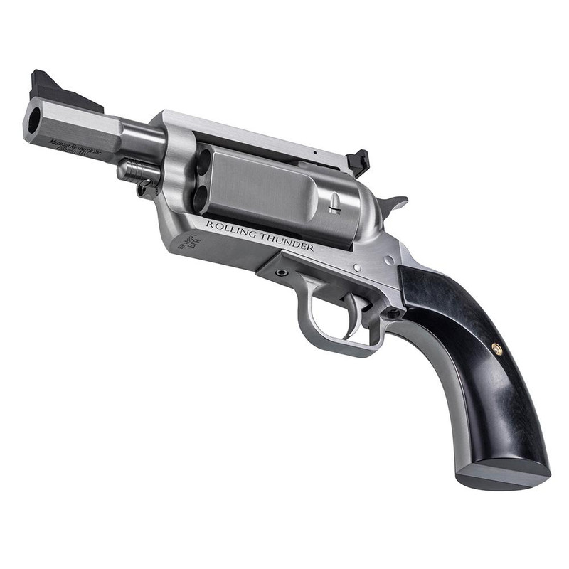 The Magnum Research BFR is a .45-70 Government single-action revolver with a 3" barrel and 5-round capacity, featuring a stainless steel construction and fixed sights. This big frame revolver is entirely U.S. manufactured with a cut rifled barrel designed for accuracy with both lead and jacketed bullets. The revolver is drilled and tapped for optics mounting, making it one of the most powerful production single-action handguns available.