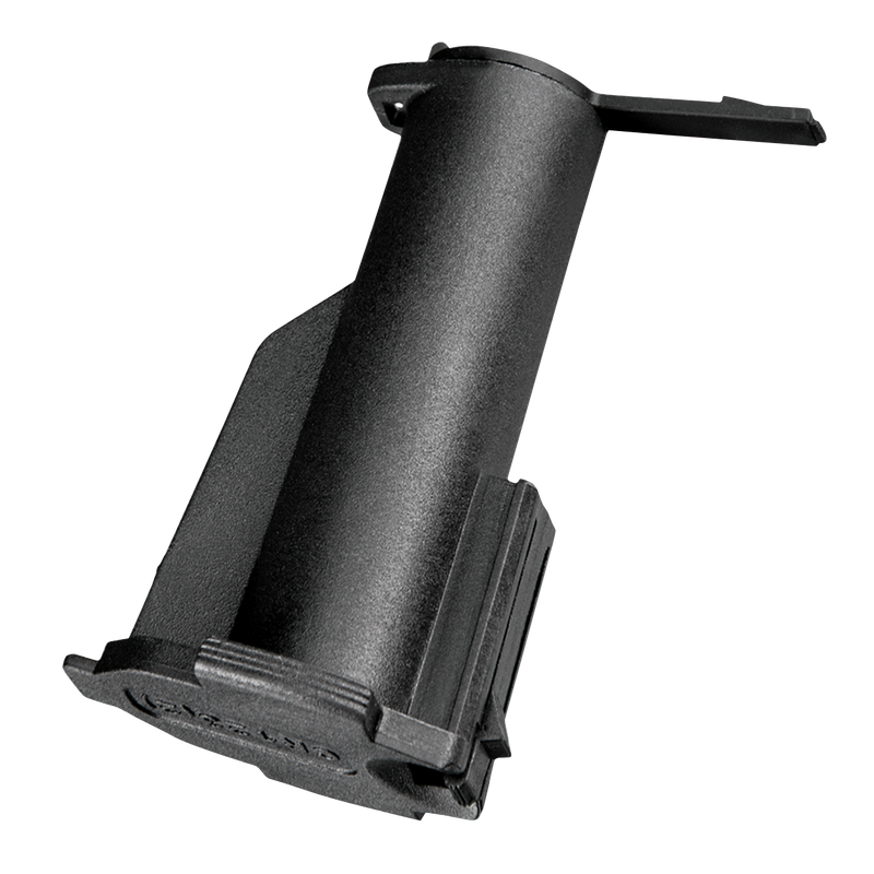 This battery storage core is designed to fit Magpul MIAD, MOE, MOE-K2, and MOE-AK grip models, holding two CR123A batteries. Constructed from black polymer with a rubber cap, it provides secure storage for backup batteries in AR-platform rifles. The core installs directly into compatible grip modules without additional tools.