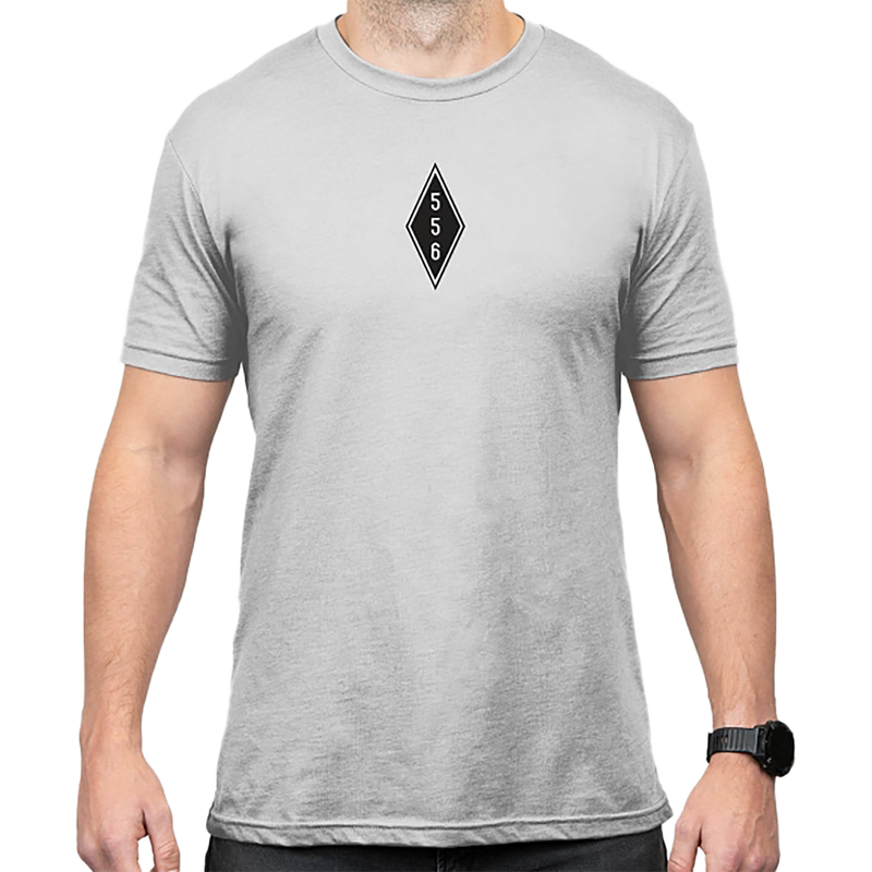 Cotton/polyester blend short sleeve t-shirt in stone gray heather color, sized XL. Features the Magpul Engineered to Feed design. Comfortable casual apparel suitable for range wear or everyday use.