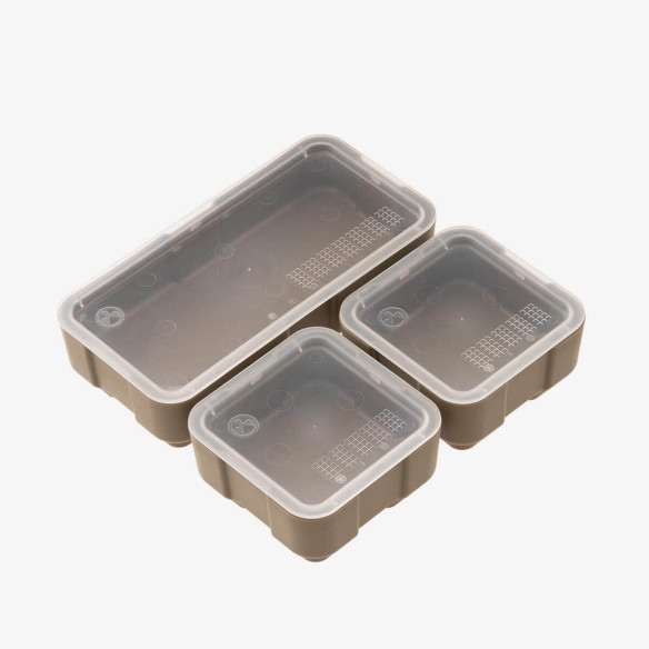 Magpul DAKA Grid Bins storage set includes one 2x4" bin and two 2x2" bins constructed from durable polymer material in Flat Dark Earth finish. These stackable bins are designed to fit with DAKA Utility Organizer panels for modular storage and organization. Ideal for ammunition, small parts, and range accessories.