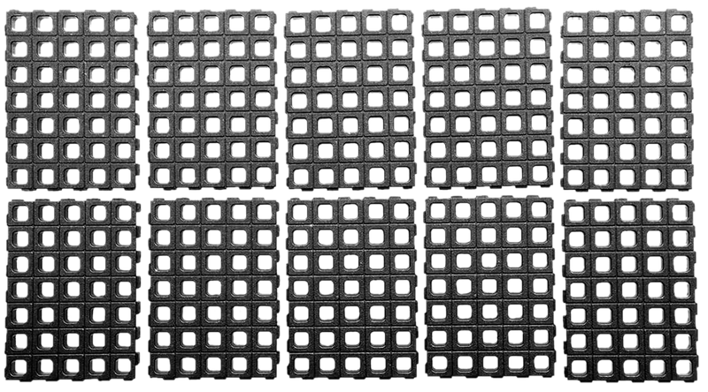 The Magpul DAKA Grid Organizer is a modular storage system designed for long rifle cases, featuring a black polypropylene construction. It includes 10 grid panels, 16 foam blocks, 4 DAKA gear straps, and 8 adhesive gap shims for customizable organization. Dimensions are 15.3" L x 14.7" W x 11.2" H, weighing 1.7 oz.