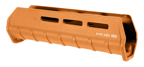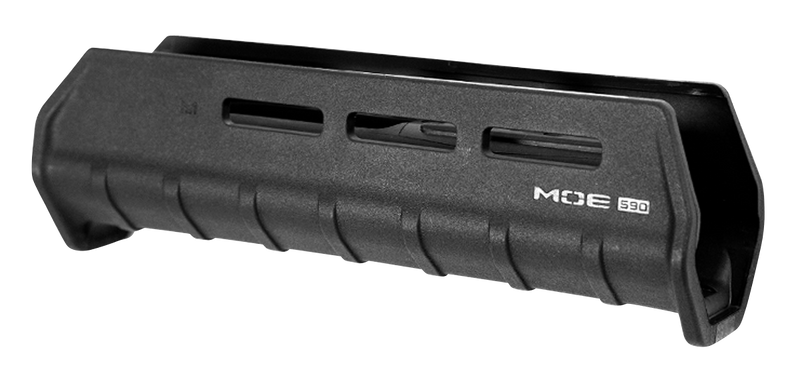 Drop-in polymer handguard (forend) designed for Mossberg 590/590A1 shotguns. Features M-LOK slots for accessory mounting and measures 10.2" in length with 2.9" width and 2.5" height. Installs without modifications for quick customization.