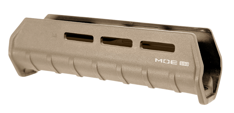 Magpul MOE M-LOK Handguard is a polymer forend designed for Mossberg 590 and 590A1 shotguns. Features M-LOK slots for accessory attachment and measures 10.1" in length with a Flat Dark Earth finish. Provides a lightweight, ergonomic platform for mounting tactical accessories.