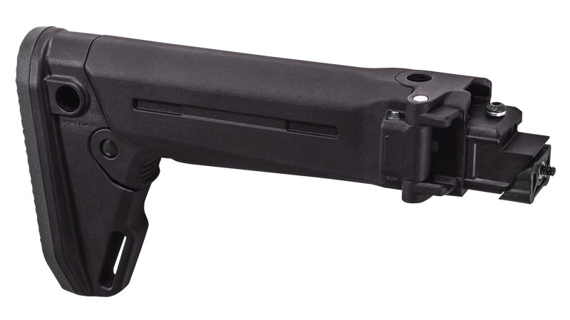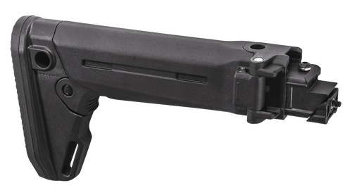 The Magpul Zhukov-S is a polymer folding stock designed for AK-platform rifles with a right-side fold and 5-position adjustable length of pull ranging from 12.20" to 14.80". Features a high-strength folding design with a rubber butt pad and overall length adjustability from 8.8" to 11.4" for customized fit.