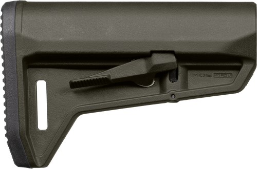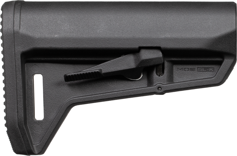 The Magpul MOE SL-K is a collapsible carbine stock designed for AR-15, M16, and M4 rifles with Mil-Spec tubes (tube not included). Constructed from reinforced polymer with dual-side release latches and ambidextrous controls, it features a sloping cheek weld and offers 6 positions with a length of pull range from 10.30" to 13.60". This stock installs directly onto standard Mil-Spec buffer tubes and is compatible with most modern AR-platform rifles.