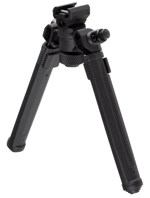 This Magpul bipod attaches to 1913 Picatinny rails and features hard-anodized 6061 T-6 aluminum construction with a Flat Dark Earth finish. The legs extend from 6.8" to 10.3" with lockable positions and replaceable rubber feet, making it suitable for AR-platform rifles and other tactical applications.