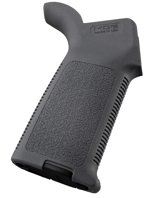 The MOE (Magpul Original Equipment) Grip is a drop-in upgrade for AR-15/M4 pistol grips featuring ergonomic hand-filling design with aggressive anti-slip texturing. Constructed from one-piece reinforced polymer, it includes storage core capability for optional gear stowage and accepts Magpul Storage Cores. This grip provides simplicity and durability for operational use while maintaining a medium ergonomic profile.