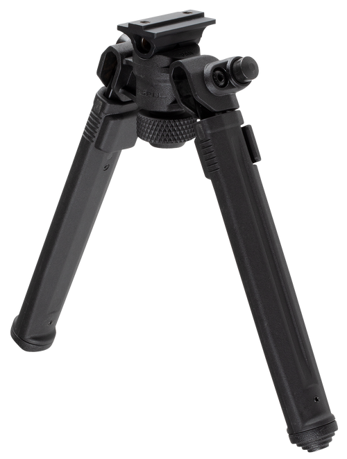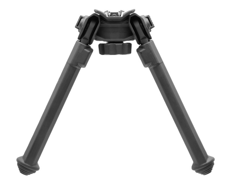 The MOE Bipod is a lightweight polymer bipod weighing 8 oz that mounts to standard sling studs. It features 7-10 inches of vertical adjustment with lockable positions and injection-molded proprietary polymer legs designed for stability and durability without deformation under pressure.
