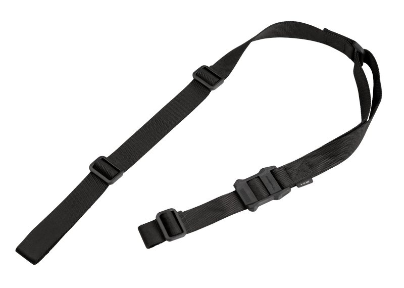 The MS1 is a versatile two-point sling built around Magpul's MS1 slider for rapid adjustments without slipping. It features custom 1.25" wide nylon construction and can function as either a dedicated two-point sling or a one-point sling with optional adapters. Designed to fit AR platform rifles with easy shoulder transitions and no snag hazards.
