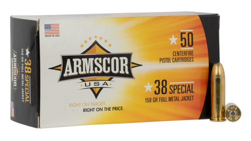 Magtech 38 Special 158gr Full Metal Jacket Flat Nose Handgun Ammunition, 50rd Box - 38P