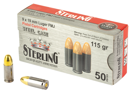 Magtech 9mm Luger ammunition loaded with 115-grain Full Metal Jacket bullets, delivering 1135 fps muzzle velocity and 329 ft-lbs of energy. Ideal for range training, target shooting, and general practice with reliable, accurate performance. Brass casing with Boxer primer, 50 rounds per box.