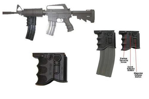 This magazine coupler set holds two rifle magazines together for quick attachment and mobility. Compatible with Galil, H&K, Ruger Mini 14, M16, AR-15, AK-47, and SIG rifles. Includes two quick-attach couplers per package.