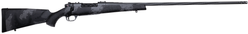 The Weatherby Mark V Live Wild is a bolt-action rifle chambered in 25 Weatherby RPM with a 24" threaded barrel and 4+1 capacity. This lightweight rifle features a carbon fiber stock with black and gray accents, Graphite Black Cerakote finish, and drilled/tapped receiver for optics mounting. Weighing just 5.7 lbs with an overall length of 45", it's designed for hunters seeking a modern, precision-engineered platform.