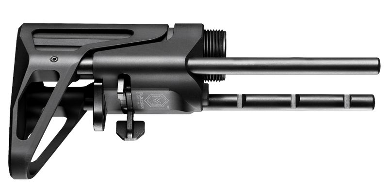 The Maxim Defense SCW Stock Gen 7 is a collapsible AR-15 stock with 5-position adjustment and standard buffer compatibility. This matte black polymer stock installs on mil-spec buffer tubes and provides a compact, adjustable length of pull for AR-15 platforms.