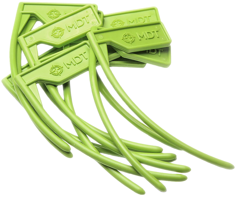Chamber flag designed for rifles chambered in .22 caliber and larger to provide a highly visible safety indicator that the chamber is clear. Comes in a 10-pack with black and green coloring for easy visibility in various lighting conditions. Dimensions are 14.6" length x 7.9" width x 1.1" height.